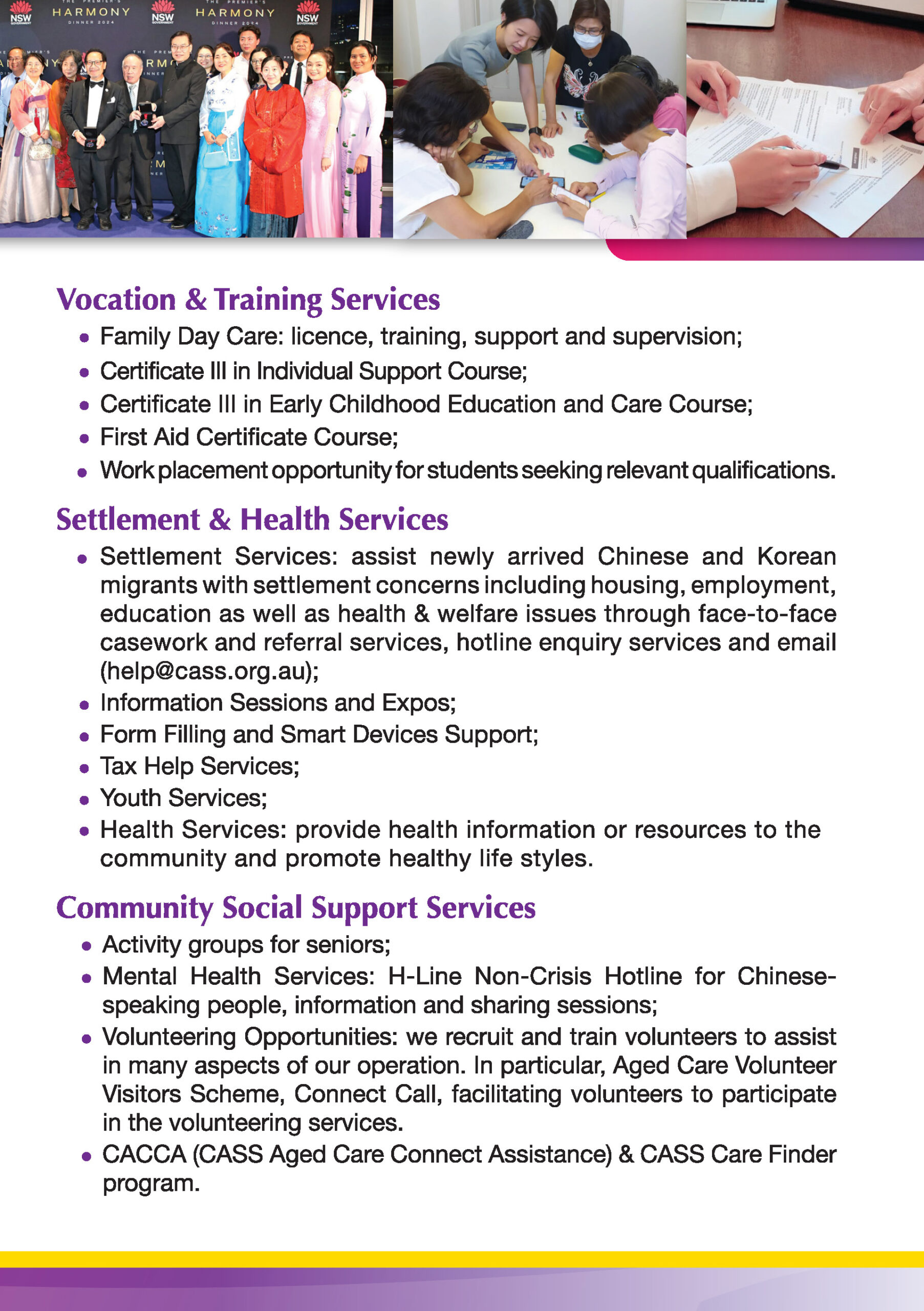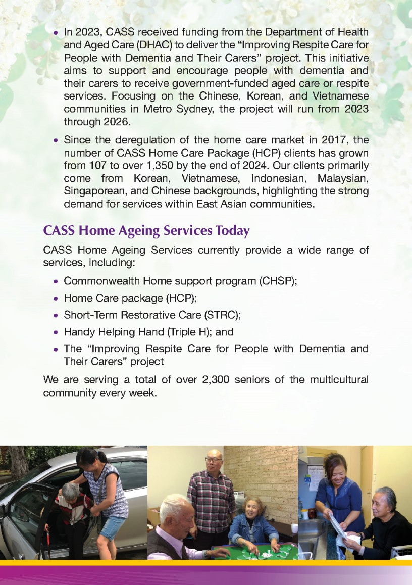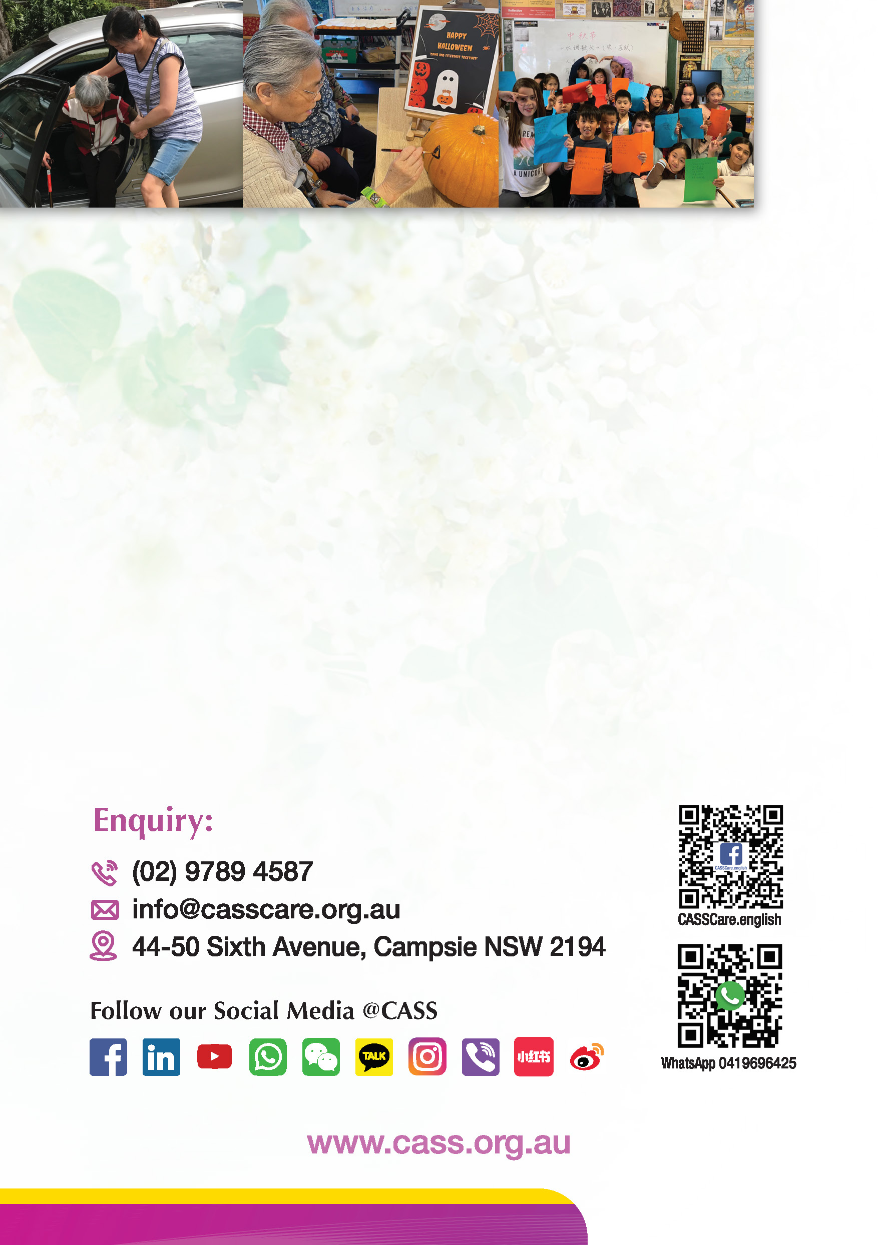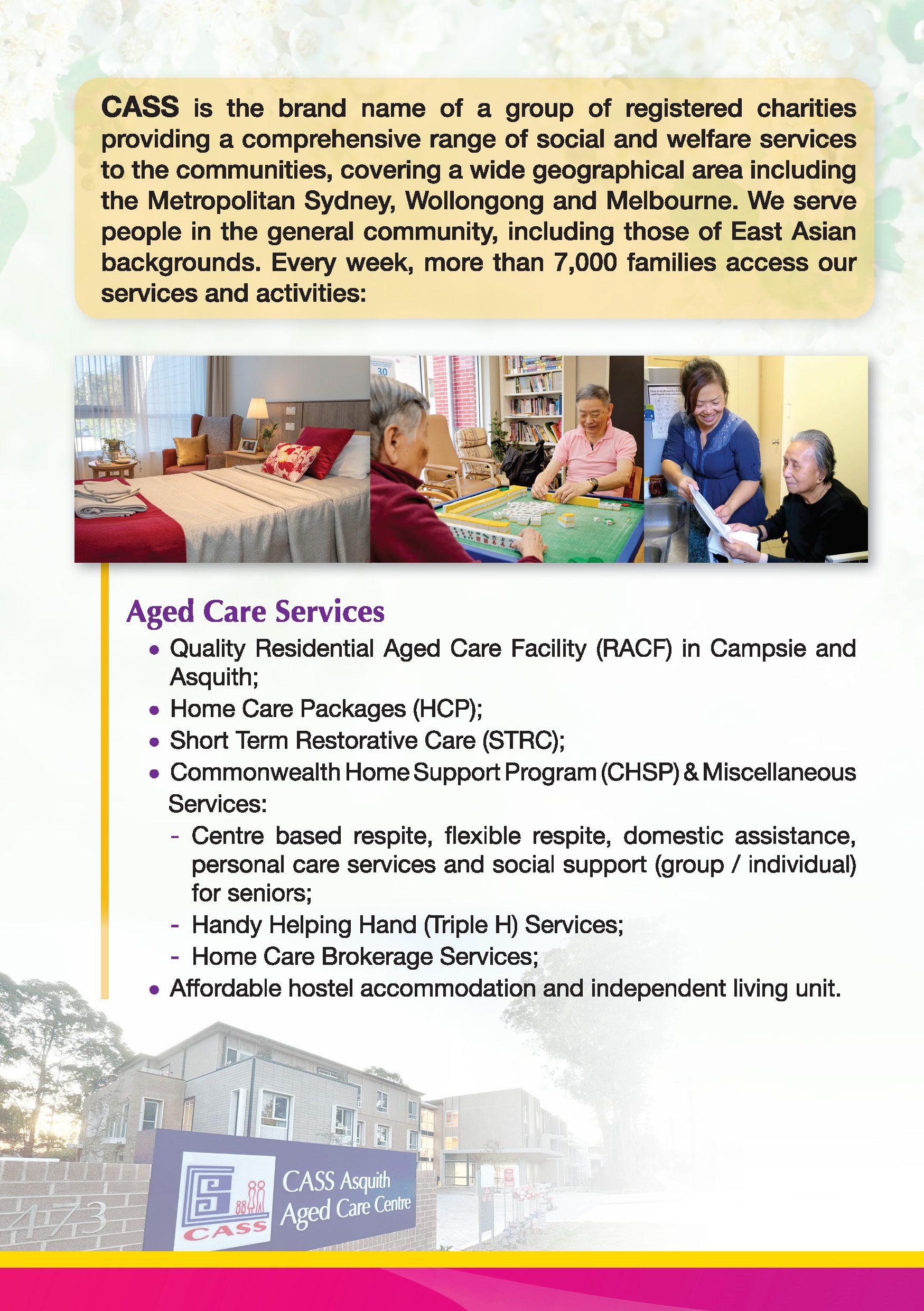 Event detailsAbout CASSSettlement ServicesHome Ageing Services Date : 5 December 2024 Time : Thursday 10:30am Venue : Orion Function Centre